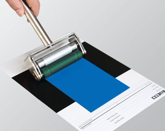 - Đổ 1 lượng mẫu cố định lên giữa trục cao su và trục anilox.